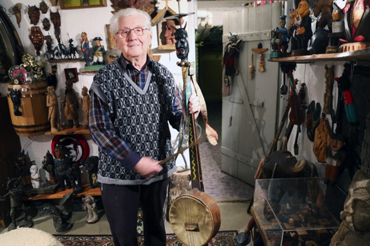 Another example of a traditional Polish instrument is the Devils Fiddle; Contrary to what the name might suggest this is a percussion instrument, a kind of fiddle you hit with a notched rod to create a rhythm. You can also knock on the floor with it for the same purpose. It comes from the Kaszuby region were it was traditionally used as a ritual instrument for scaring off devils, evil forces etc. Nowadays it is commonly seen in Kashubian folk groups. The mask in the upper part of the fiddle is typically represents a devil or a fantastic being.